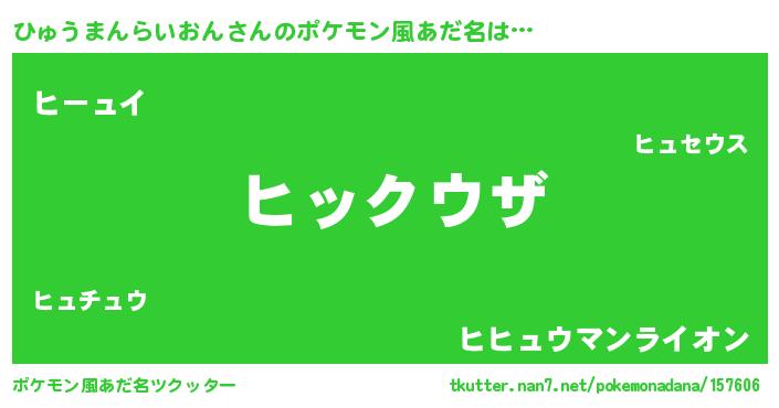 | ヒーロー風カッコイイあだ名 | 『慈愛の使者ひゅうまんらいおん』 |