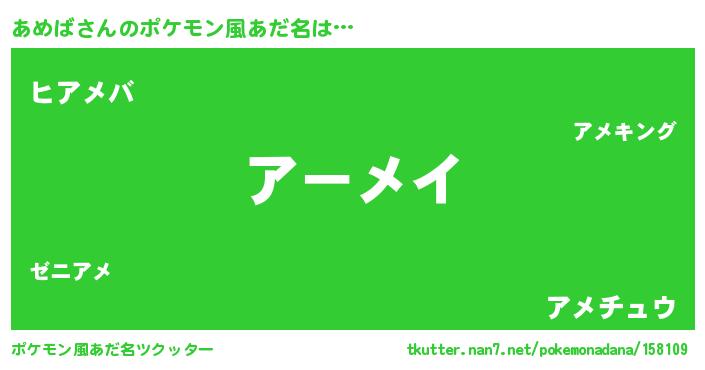 | 意味不明あだ名 | 『住所不定無職あめば(95歳)』 |