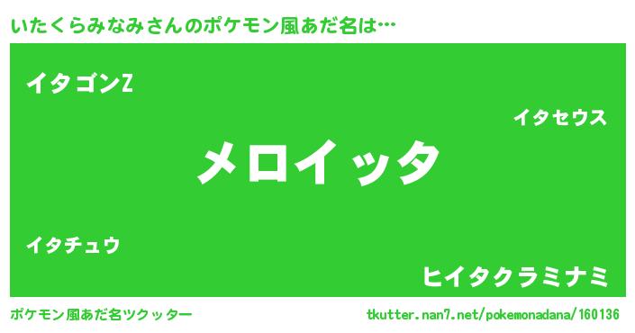 | 欧米人風あだ名 | 『いたくらみなみ・ステッグマイヤー』 |