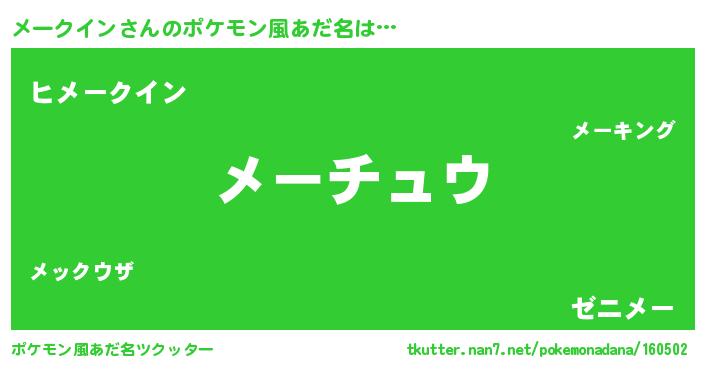 | ヒーロー風カッコイイあだ名 | 『スーパーメークイン』『銀牙騎士メー』 |