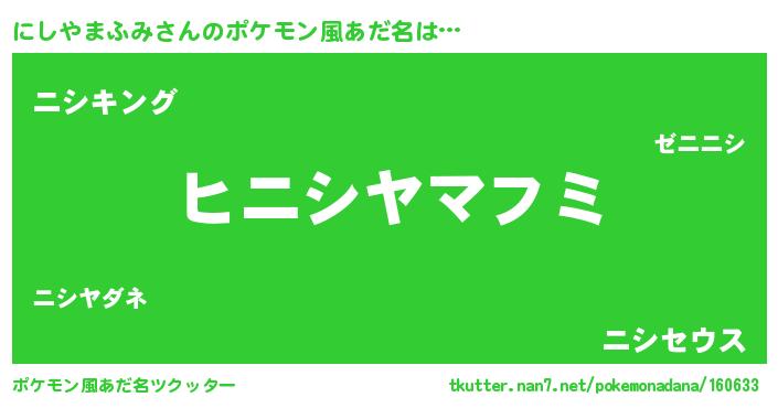 | 女子向けラノベタイトル風あだ名 | 『にしやまふみの卵を拾いまして』 |