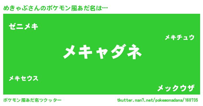 | 自動車の名前っぽいあだ名 | 『メクア』『デミメ』『メンR』 |