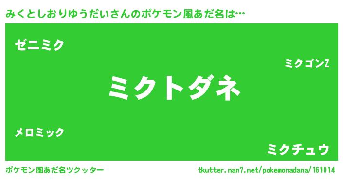 | ファンタジー風あだ名 | 『エターナルミクトシオリユウダイー』 |