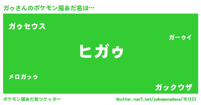 | ヒーロー風カッコイイあだ名 | 『黄金騎士ガゥ』『サイバー戦士ガゥ』 |