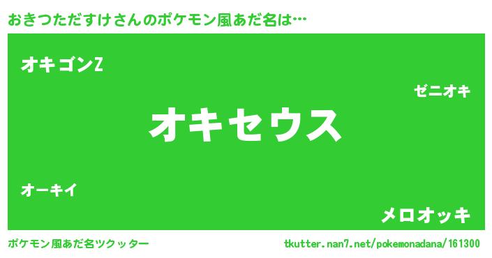 | 男性向けラノベタイトル風あだ名 | 『Re:おきつただすけから始める異世界生活』 |