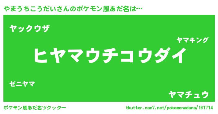 | 男性向けラノベタイトル風あだ名 | 『やまうちこうだいの嫁は女の子じゃないと思った?』 |