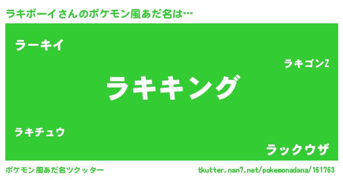 | ヒーロー風カッコイイあだ名 | 『仮面ラキダー』『愛の使者ラキボーイ』 |
