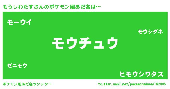 | ヒーロー風カッコイイあだ名 | 『スーパーモウシワタス』『仮面モウダー』 |