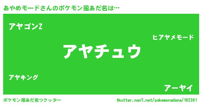 | 胡散臭い通販商品みたいなあだ名 | 『億万長者になれるブレスレット…その名も「あやめモード」』 |