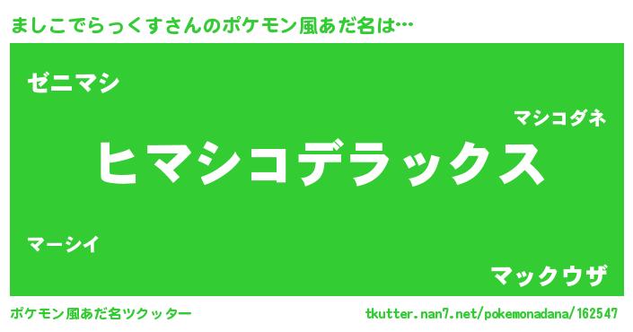 | 女子向けラノベタイトル風あだ名 | 『ましこでらっくすの卵を拾いまして』 |