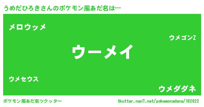 | ヒーロー風カッコイイあだ名 | 『仮面ウメダー』『究極戦士ウメダヒロキ』 |
