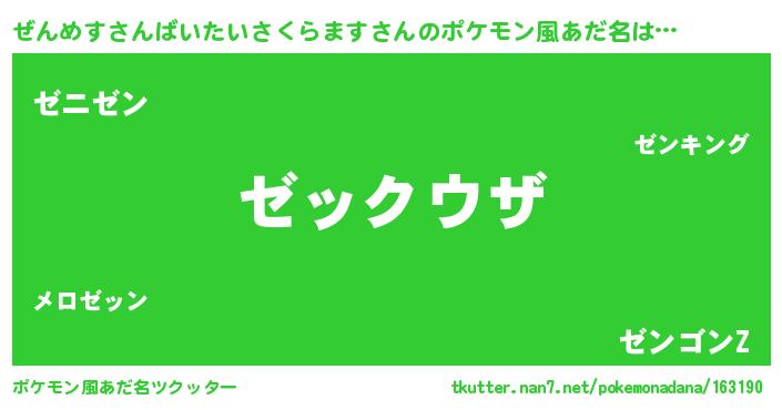 | ヘコむあだ名 | 『ぜんめすさんばいたいさくらます(笑)』 |