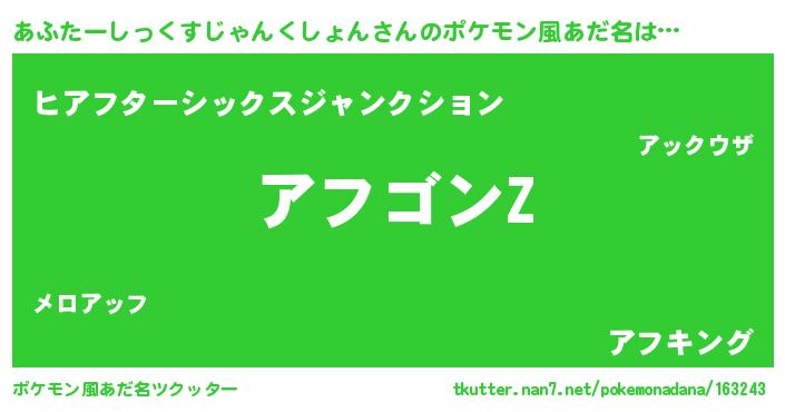 | 男性向けラノベタイトル風あだ名 | 『あふたーしっくすじゃんくしょんに滅ぼされるだけの簡単なお仕事です』 |
