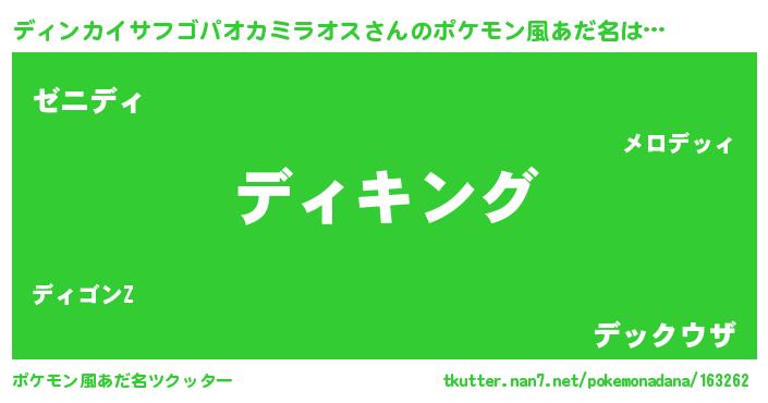 | 男性向けラノベタイトル風あだ名 | 『ディンカイサフゴパオカミラオス~年齢イコール彼女いない歴の魔法使い~』 |