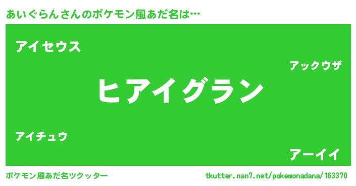 | 欧米人風あだ名 | 『ウサインあいぐらん』 |