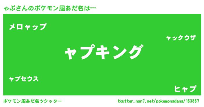 | ヒーロー風カッコイイあだ名 | 『黄金騎士ャプ』『愛の使者ゃぷ』 |