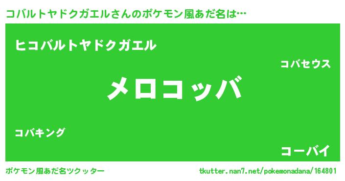 | 胡散臭い通販商品みたいなあだ名 | 『信頼と実績のサプリメント…その名も「コバルトヤドクガエル」』 |