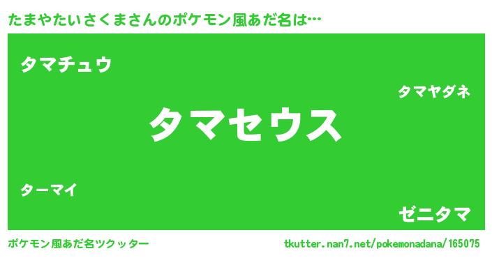 | 男性向けラノベタイトル風あだ名 | 『Re:たまやたいさくまから始める異世界生活』 |