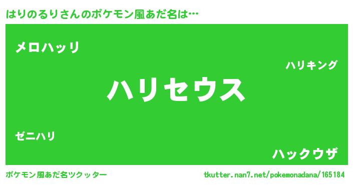 | 男性向けラノベタイトル風あだ名 | 『Re:はりのるりから始める異世界生活』 |