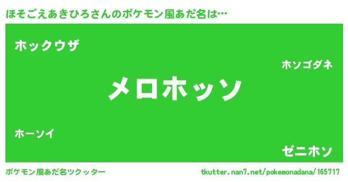 | 欧米人風あだ名 | 『ほそごえあきひろ・ステッグマイヤー』 |