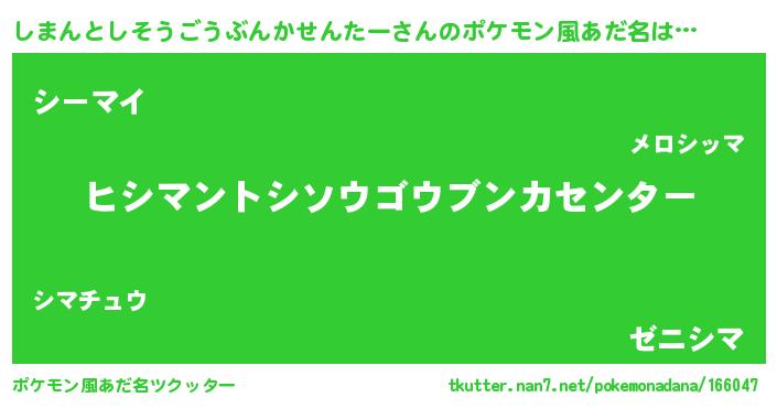 | 萌えアニメ | 主人公(しまんとしそうごうぶんかせんたー)のあだ名『 しましま』 |