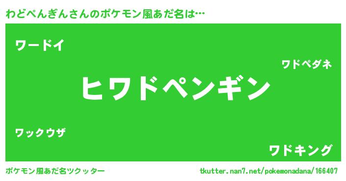 | 意味不明あだ名 | 『とにかく怪しいわどぺんぎん』 |