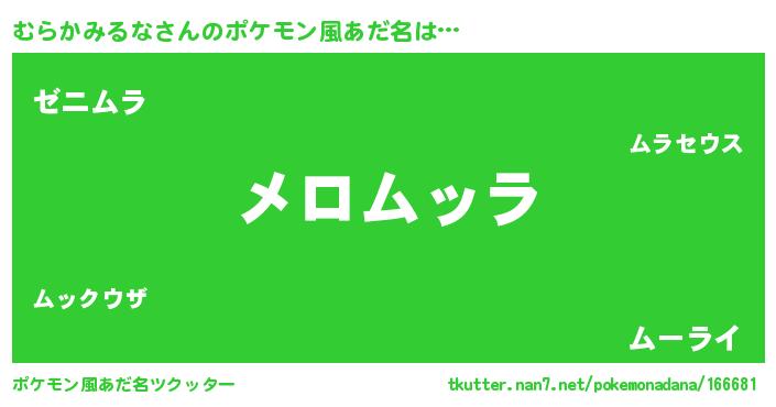 | ヘコむあだ名 | 『むらかみるな(笑)』『むらっふぃ~』 |