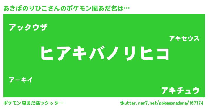 | 女子向けラノベタイトル風あだ名 | 『あきばのりひこ様がみてる』 |