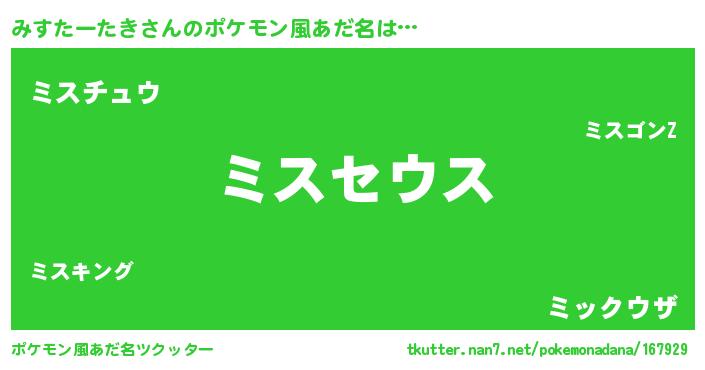| ヘコむあだ名 | 『みすふぇ~』『みすたーたき(震え声)』 |
