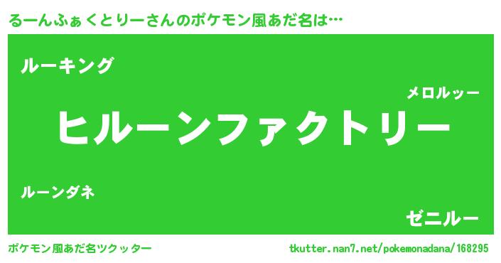 | 女子向けラノベタイトル風あだ名 | 『るーんふぁくとりーの卵を拾いまして』 |