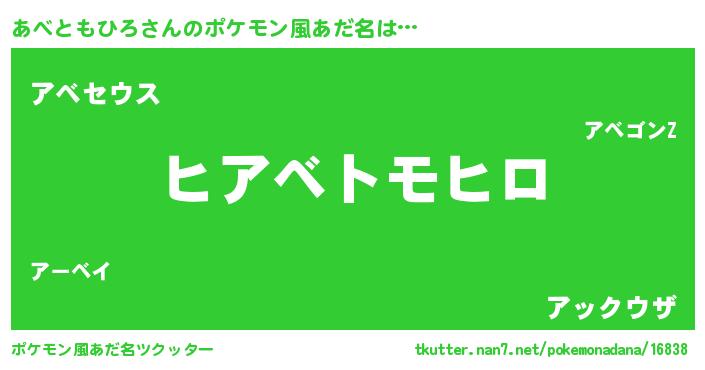| 男性向けラノベタイトル風あだ名 | 『あべともひろの嫁は女の子じゃないと思った?』 |