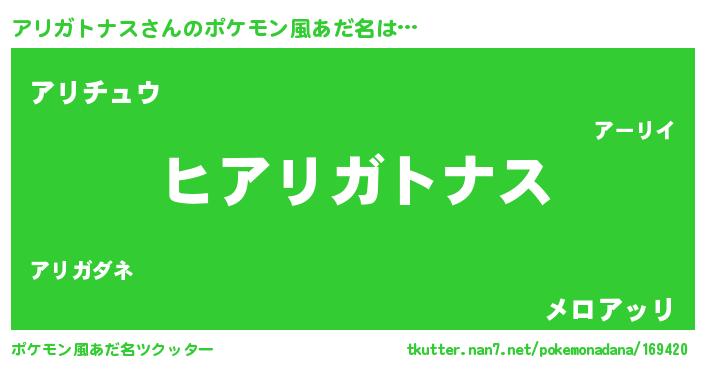 | 胡散臭い通販商品みたいなあだ名 | 『信頼と実績のサプリメント…その名も「アリガトナス」』 |