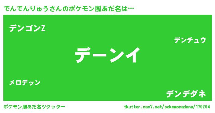 | 意味不明あだ名 | 『住所不定無職でんでんりゅう(5歳)』 |