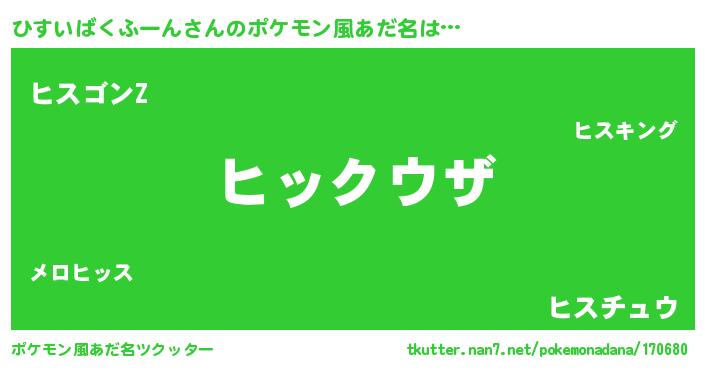| 男性向けラノベタイトル風あだ名 | 『ノーゲーム・ノーヒスイバクフーン』 |