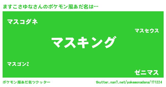| 男性向けラノベタイトル風あだ名 | 『ますこさゆな~年齢イコール彼女いない歴の魔法使い~』 |