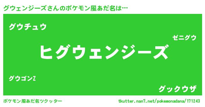 | 男性向けラノベタイトル風あだ名 | 『ダンジョンにグウェンジーズを求めるのは間違っているだろうか』 |