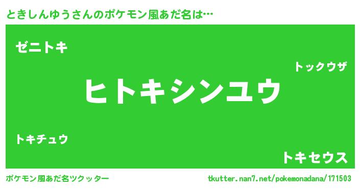 | 女子向けラノベタイトル風あだ名 | 『ときしんゆうは平凡を望む』 |