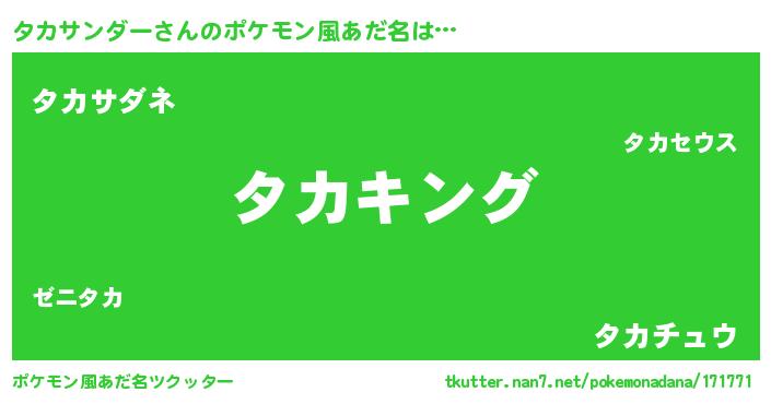 | 男性向けラノベタイトル風あだ名 | 『タカサンダー~年齢イコール彼女いない歴の魔法使い~』 |