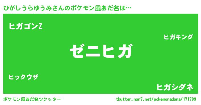 | ヘコむあだ名 | 『ひがしうらゆうみ(遠い目)』『酢こんぶ』 |