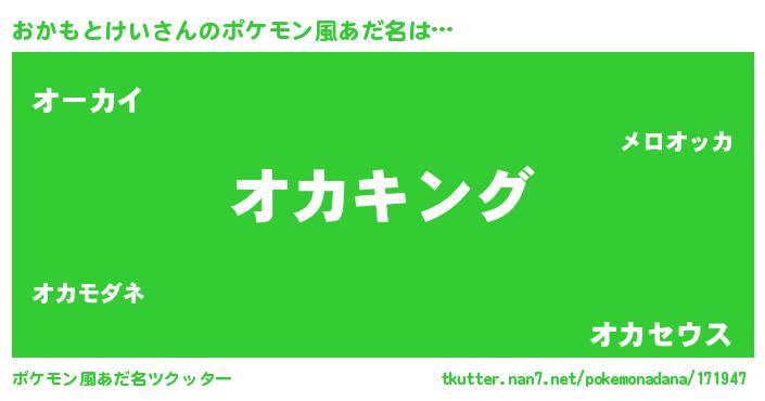 | 男性向けラノベタイトル風あだ名 | 『おかもとけい~年齢イコール彼女いない歴の魔法使い~』 |