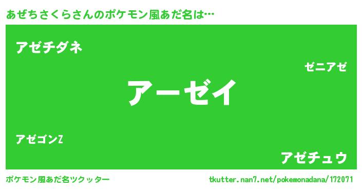 | ヒーロー風カッコイイあだ名 | 『仮面アゼダー』『スーパーアゼチサクラ』 |