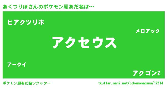 | 男性向けラノベタイトル風あだ名 | 『Re:あくつりほから始める異世界生活』 |