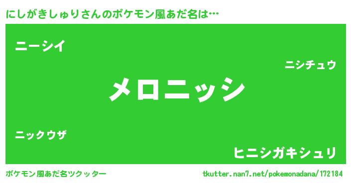 | 意味不明あだ名 | 『住所不定無職にしがきしゅり(1歳)』 |