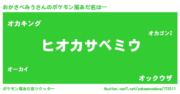 | 欧米人風あだ名 | 『ウサインおかさべみう』 |