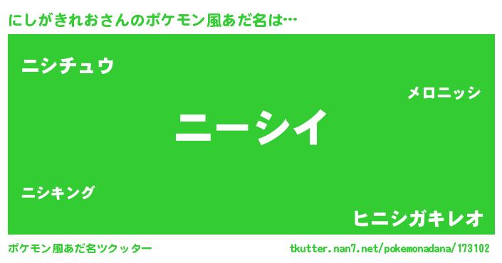 | 男性向けラノベタイトル風あだ名 | 『この素晴らしい世界ににしがきれおを!』 |