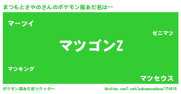 | ピコ太郎風あだ名 | 『ピコマ郎』『マコ一郎』『ピマ五郎』 |