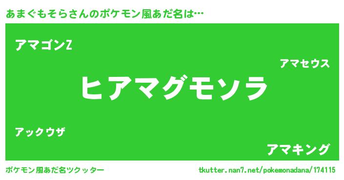 | 欧米人風あだ名 | 『ウサインあまぐもそら』 |