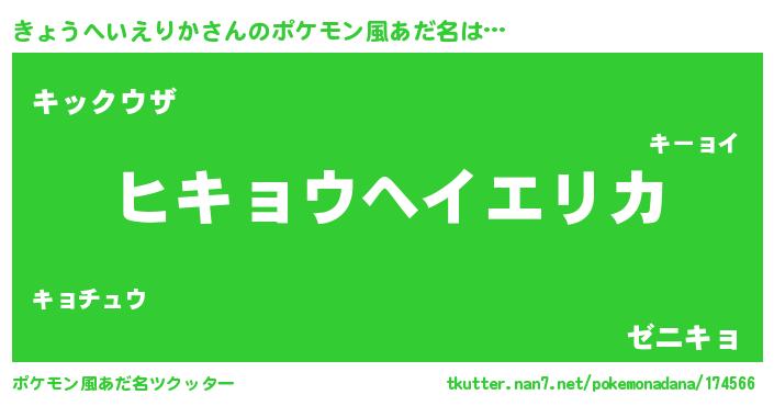 | 意味不明あだ名 | 『とにかく怪しいきょうへいえりか』 |