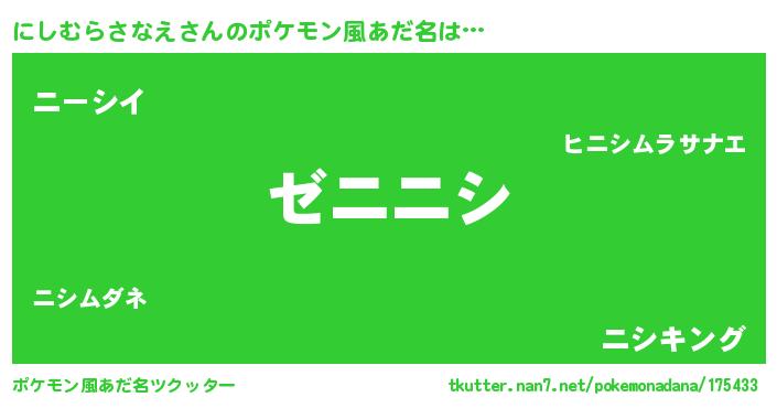 | 意味不明あだ名 | 『永久保存にしむらさなえ』 |