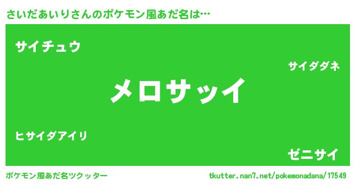 | 欧米人風あだ名 | 『さいだあいり・ステッグマイヤー』 |